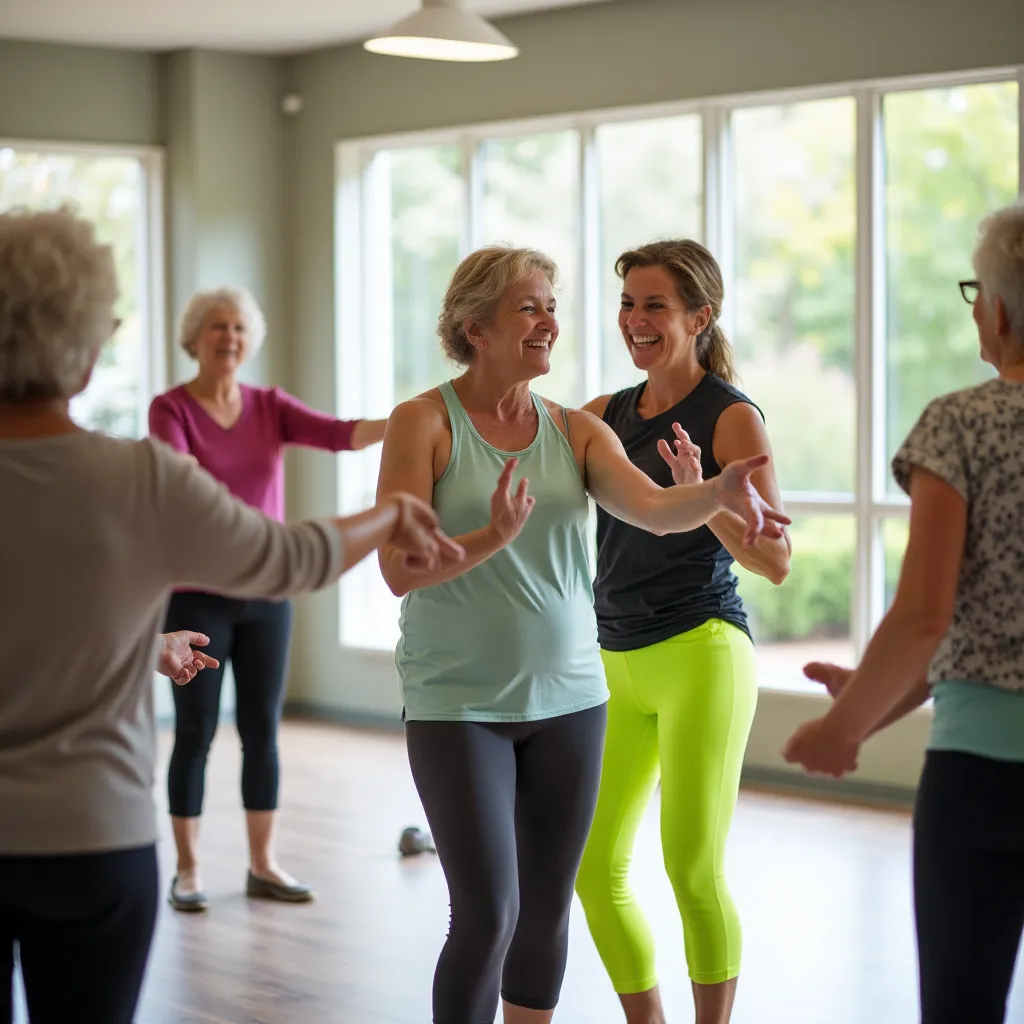 Tailored physical activities including chair yoga, gentle stretching, and specialized senior fitness programs.